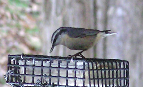 Notes: This species is smaller than the white-breasted nuthatch and has a distinctive black eye-stripe. It winters in this area.