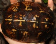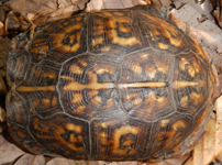 MAGGOTS removed from infection in neck, hopefully he will heal up fine. Appears Old. Carapace edges chewed up, a bit of shell rot.